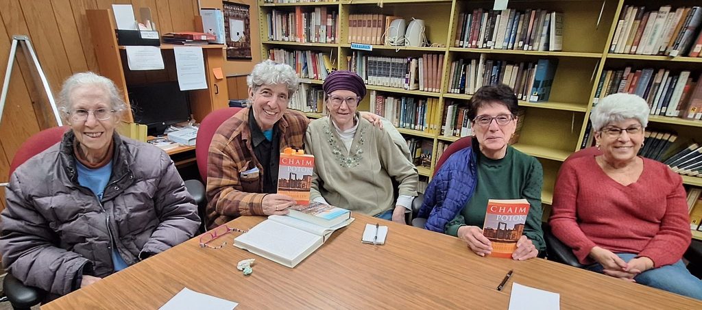 Everyone is welcome to attend the book club, which meets at the synagogue’s library bi-monthly at noon to discuss books on various topics.