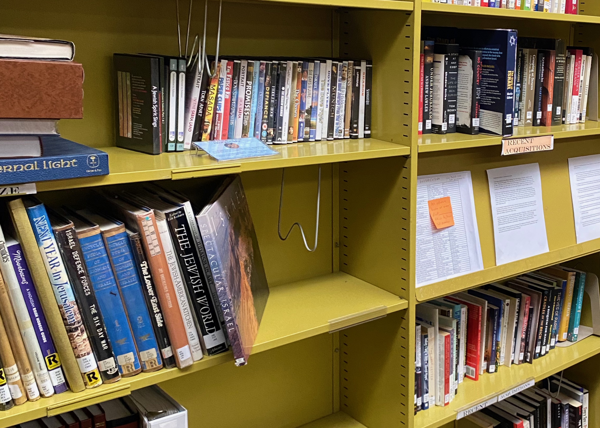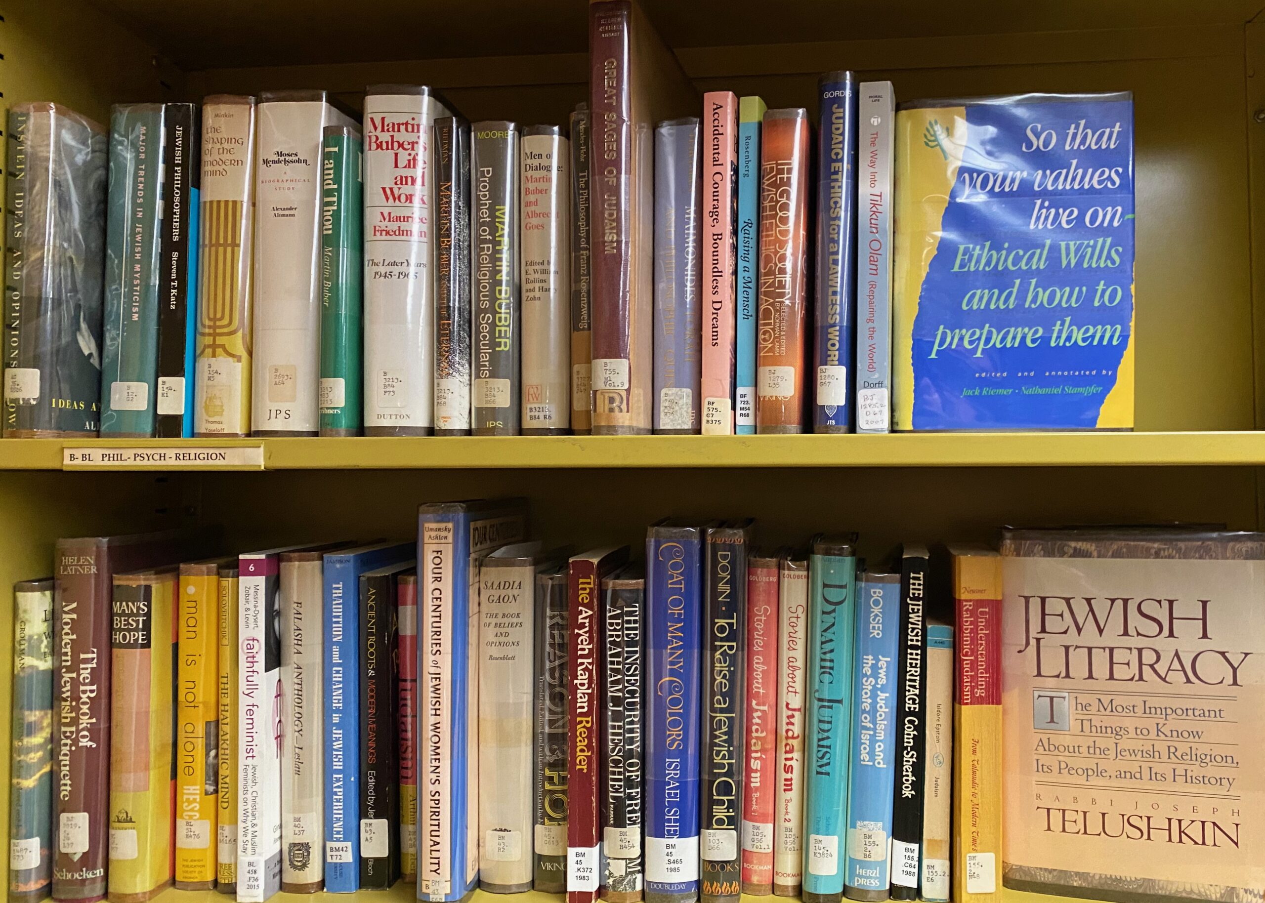 Our library of approximately 1500 books focuses on Judaism, Jewish religion and philosophy, Jewish history, Israel, and literature and arts with Jewish and Israeli themes. We have material from a wide range of eras and styles, from classic religious texts to contemporary novels to historical surveys to modern Israeli poetry. Congregants are welcome to check books out of the library to read at home or on the go. Just write your name and the checkout date on the blue card in the book pocket and leave it in the card box when you check out. When you return the book, leave it on the returns table and we’ll re-shelve it for the next reader to enjoy.